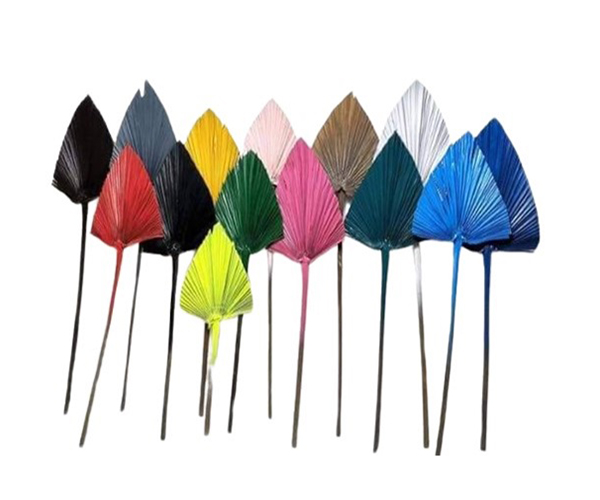Palm trees grows in the tropical location. Palms have large, Fan shaped or Feather shaped leaves. The semi dry palm leaves are completely dried. The midrib of the dried leaves is removed splitting the palm leaves into two halves separating the stick. Later the palm leaves are either cut to more thin strips or kept to carry on with the further dyeing process. The dried palm leaves are cut to more thin strips and dyed to give respective color.